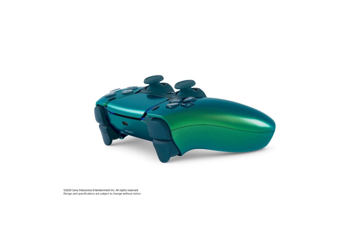 Геймпад DualSense 5 Chroma Teal — эксклюзивный контроллер для PlayStation 5 из коллекции Chroma, выпущенный в январе 2025 года. Он сочетает в себе переливающийся оттенок зелёного цвета, создавая эффект «хамелеона», который меняется в зависимости от угла освещения.