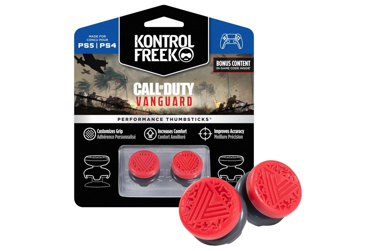 Накладка на стики CoD Vanguard Red [Kontrol Freek] — набор из двух колпачков для стиков контроллера DualSense/Xbox, выполненных из премиальный ABS-пластик с текстурированным верхом из серии Kontrol Freek.
