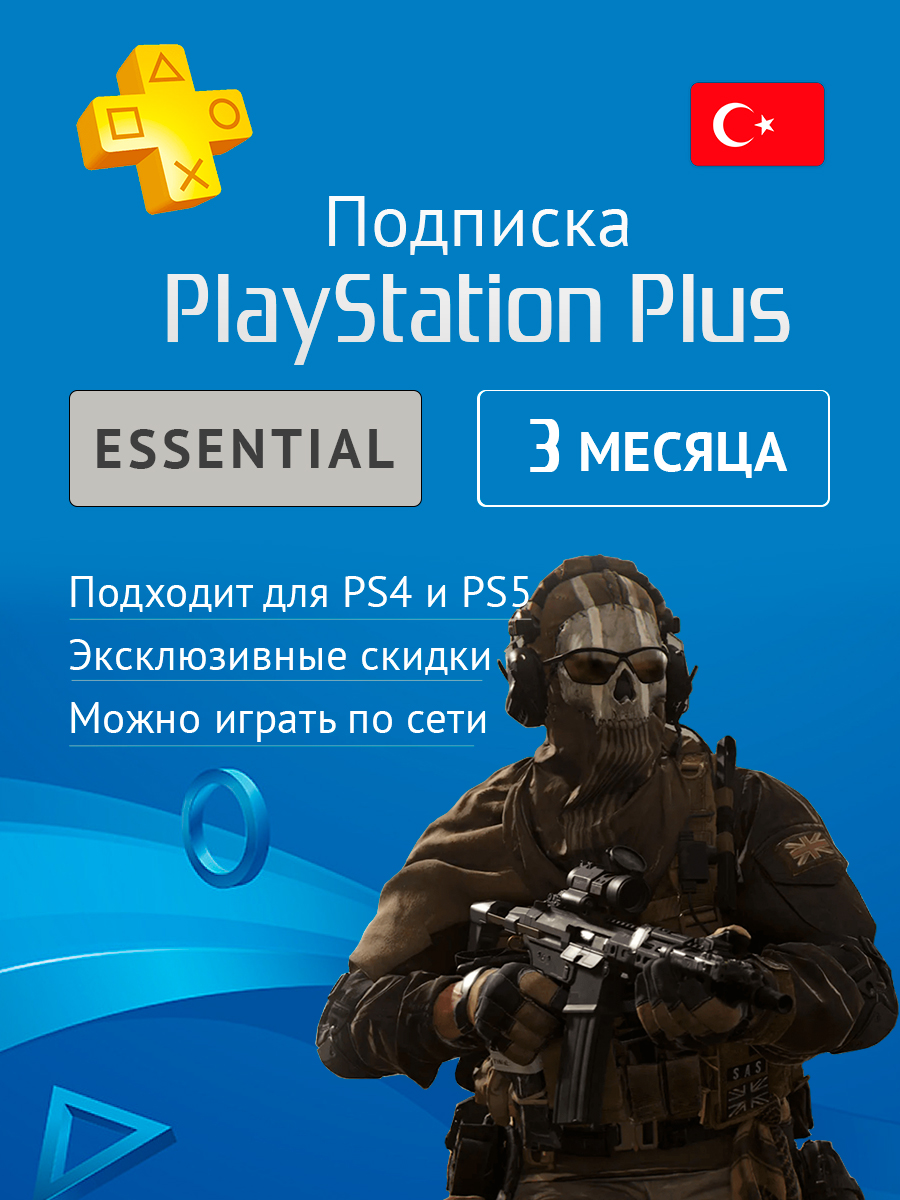 PS PLUS Essential подписка на 3 мес. (акк. Турция)