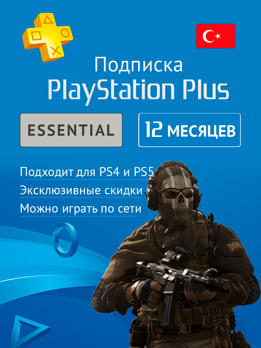 PS PLUS Essential подписка на 12 мес. (акк. Турция)