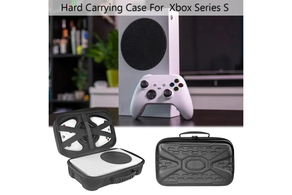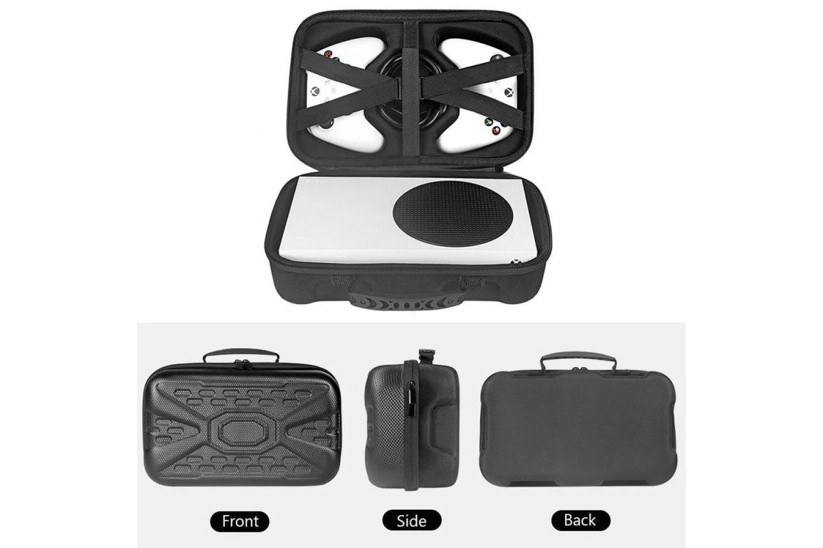Чехехол для Xbox Series S и геймпадов — жёсткий переносной кейс для безопасной транспортировки консоли Xbox Series S и двух контроллеров.