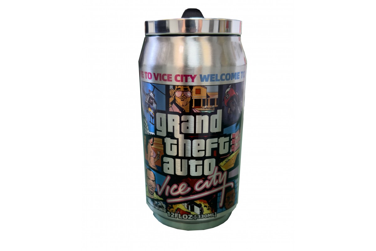 Термос 330 мл. GTA 5 серый — стильный и практичный термос с принтом GTA 5 на корпусе серого цвета, выполненный из нержавеющей стали и рассчитанный на 330 мл любимого напитка.