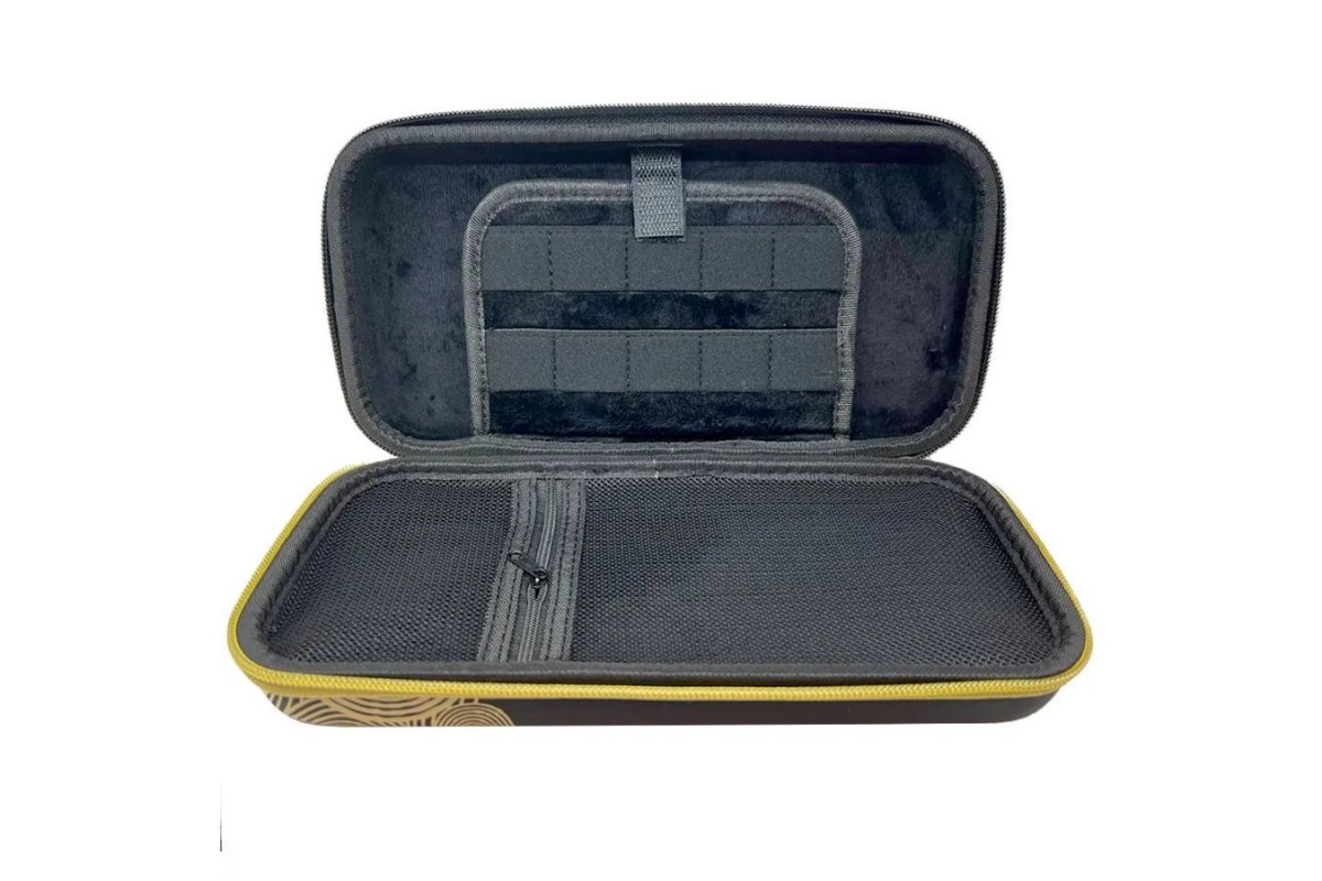Сумка - чехол Nintendo Oled Zelda Черный — надёжный и стильный аксессуар для защиты вашей консоли Nintendo Switch OLED. Выполнен в элегантном чёрном дизайне с тематическими элементами Legend of Zelda, подчёркивающими уникальность изделия.